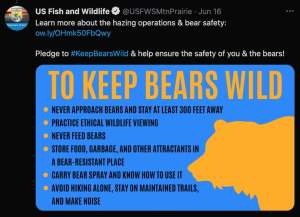 The Fish and Wildlife Service is pushing people to take the agency’s bear safety pledge as part of its #keepbearswild campaign. A graphic distributed over social media and elsewhere promotes ethical wildlife viewing and safe practices around grizzlies.