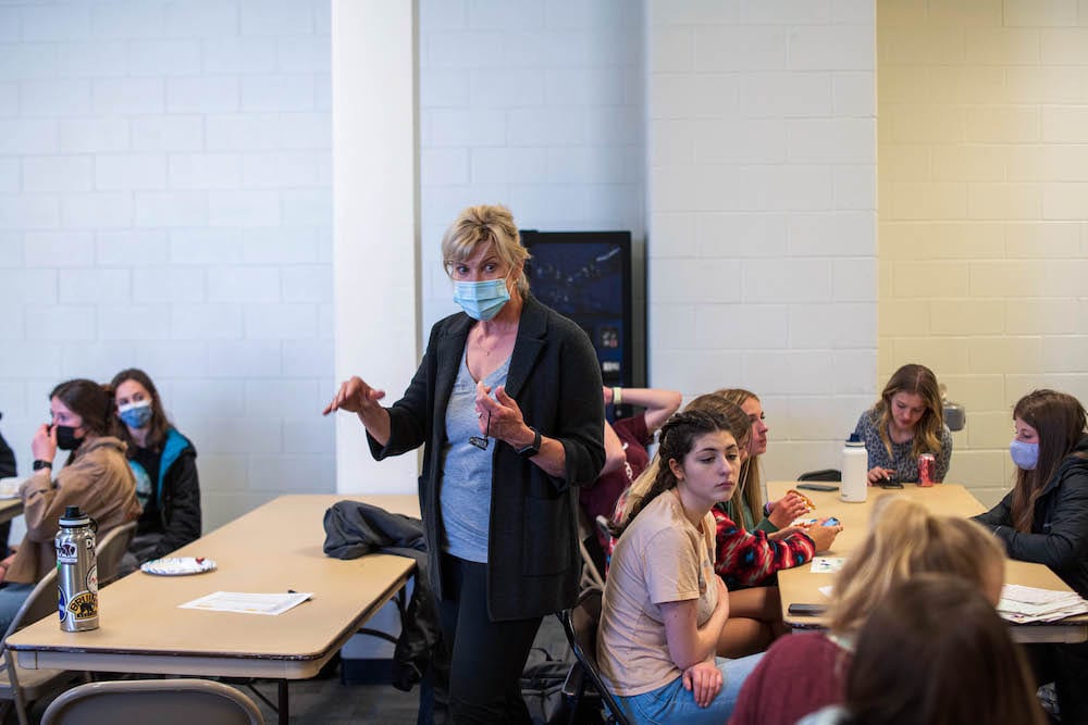 Although the pandemic stalled the plan to offer suicide prevention education at Cody High School, it finally happened in May 2021. Morris, who has blonde hair and a lot of energy, met with her volunteers in the school lobby to pass out flash drives with a slideshow that would help them walk students through a program called QPR — Question, Persuade and Refer.