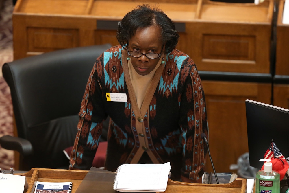 Sen. Lynn Hutchings (R-Cheyenne) waits for an answer after asking a question about a bill during the first day of the 66th Wyoming Legislature Monday, March 1, 2021, inside the state Capitol. (Michael Cummo/Wyoming Tribune Eagle/Wyoming News Exchange)