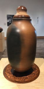 Judy Folwell and James F. Jackson “Tan and Black Micaceous Urn with Lid” (Camellia El-Antably)