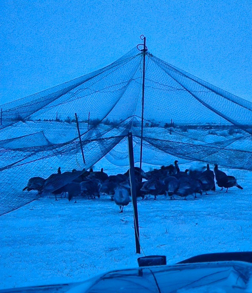The work entailed setting up box traps as well as drop nets — which were used to gather large flocks of birds on bigger properties — in areas heavily used by turkeys before transporting the birds to their new homes.