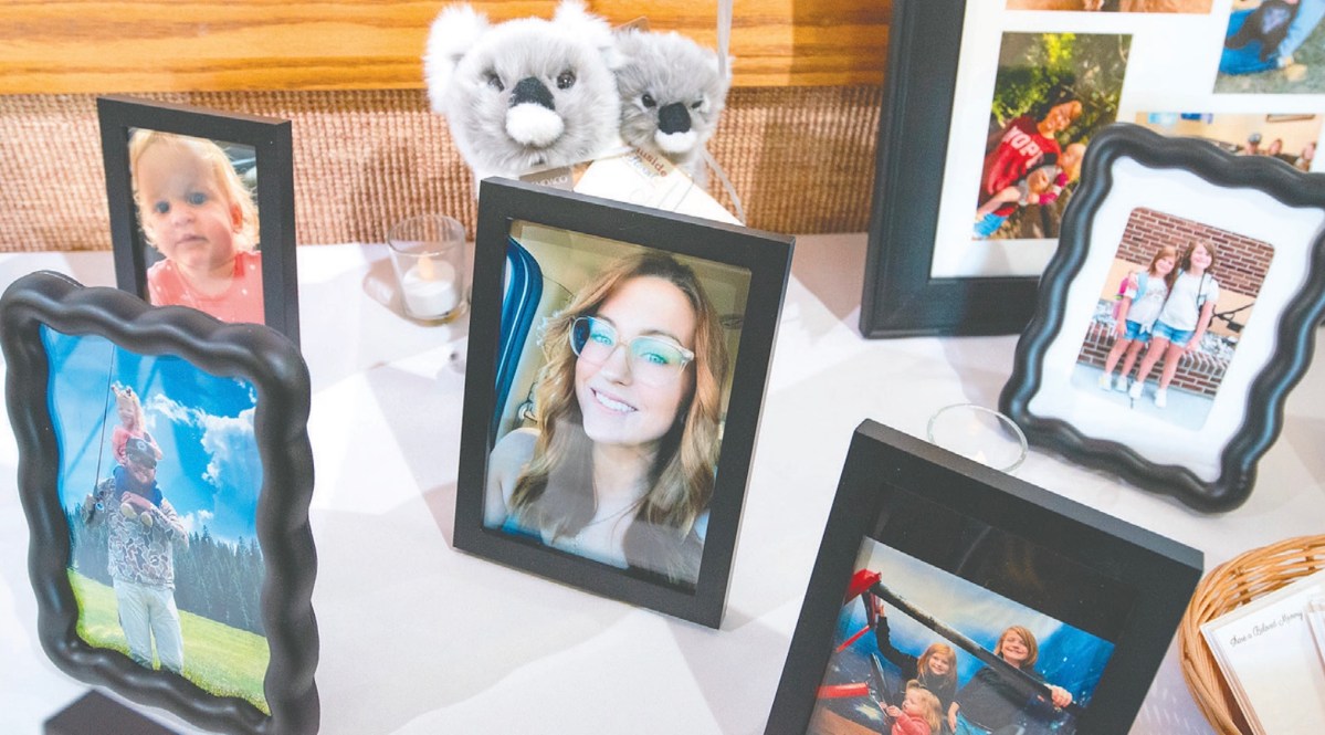 Tears were flowing before the first speaker took the pulpit. A digital scrapbook displayed photos of happier times for the Harshman/Blackmer family. A collection of photos and a few plush toys were arranged on tables at both entrances and flanked by beautiful wreaths.