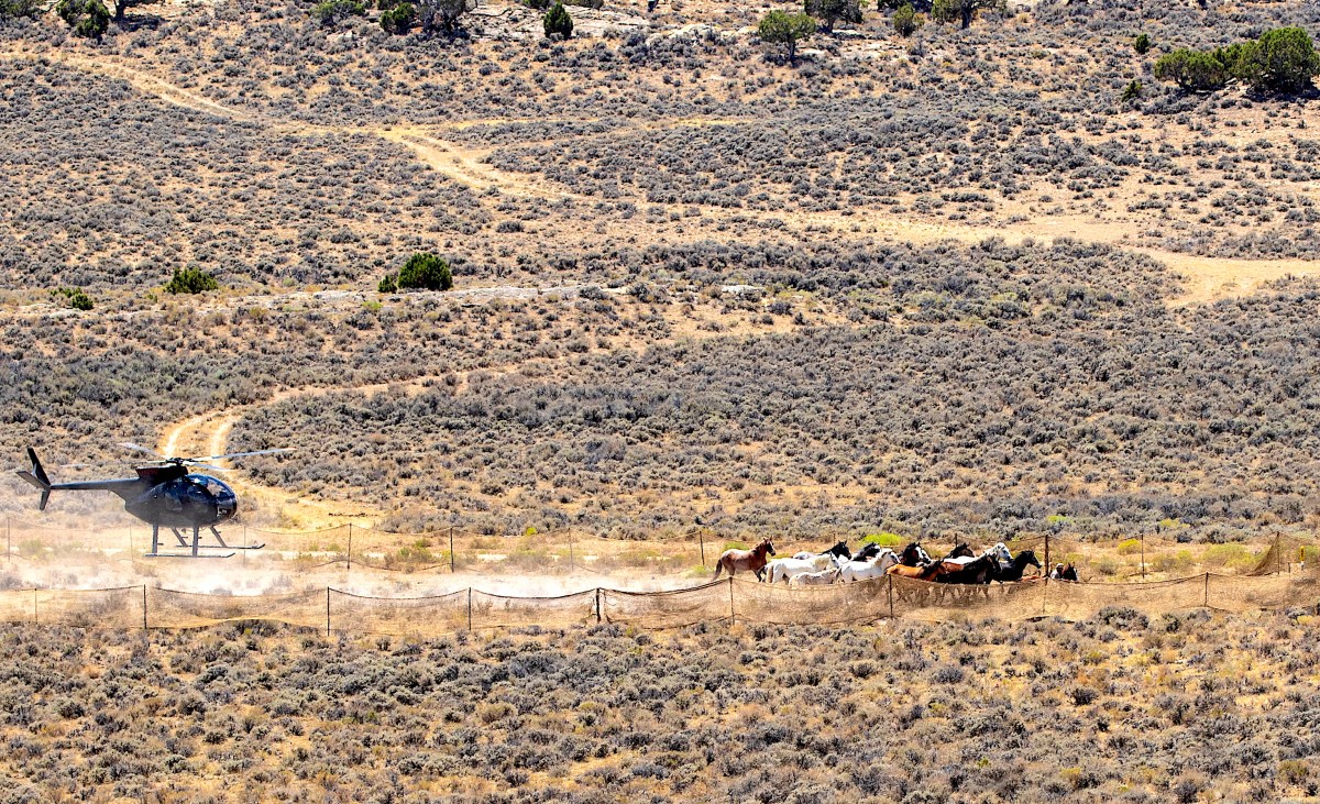 No helicopter or summer Roundups please!! It can be done from horse back! Get 10 horsemen and good horses and slowly push them to the trap. You will have healthy and calmer horses and no deaths or injuries!