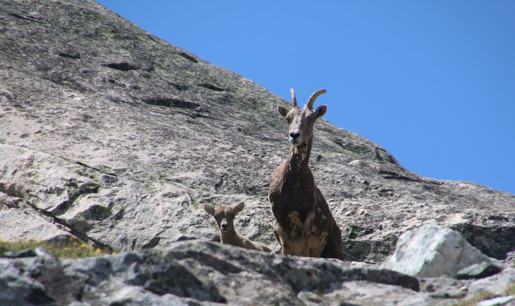 A bighorn ewe and Lamb from the Whiskey Mountain herd. (Rachel Smiley)