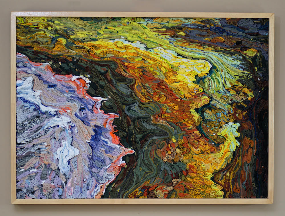 Rowswell’s “Crazy” is not nearly as long as the Bayeux tapestry, but long enough to extend along one wall of The Nic’s McMurry Gallery. Long enough to require it to be transported in pieces when Rowswell brought the work to Casper.