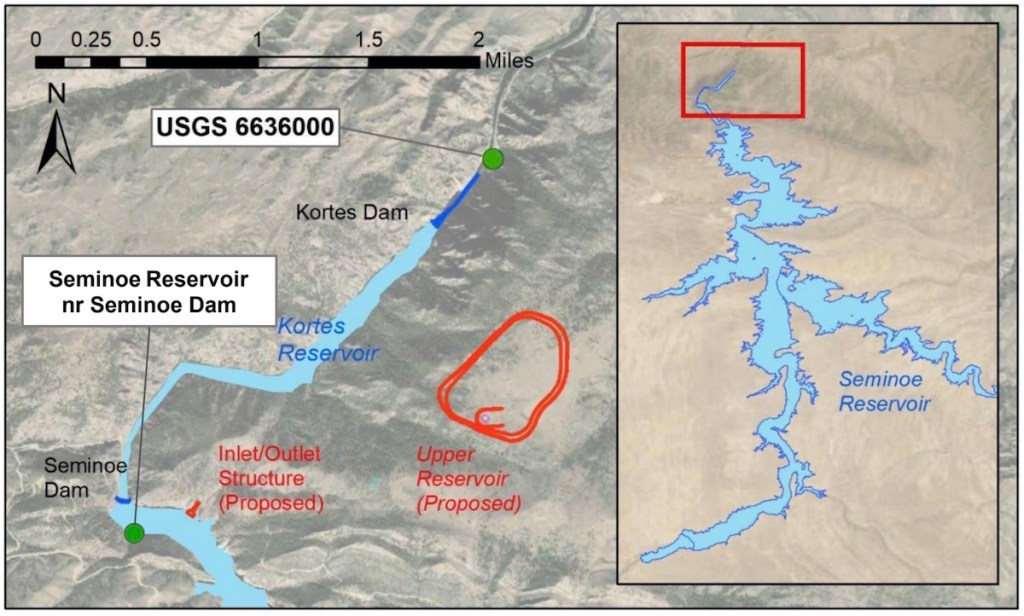 The massive $3 billion to $5 billion project would serve as an “energy‑storage facility,” the company told WyoFile. “Think of it as a ‘water battery’ that stores energy generated when demand is low. When demand increases, water is released from the upper reservoir back into Seminoe, driving hydroelectric turbines to produce electricity.”