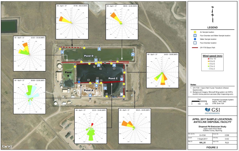 Some basin residents have pointed to a pond near Boulder as a potential source of the volatile organic compounds that are ozone precursors. DEQ’s air quality division, along with a team of contractors, has been working with disposal companies R360 Environmental Solutions, LLC and Anticline Disposal, Inc. to measure air emissions at the LaBarge and Pinedale facilities.