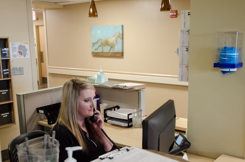 “Hello. How can I help?” is a good place to start. Kat Stewart, a certified nursing assistant, ER tech and veteran of the ER reception desk has the delivery down, just on the warm side of clinical.
