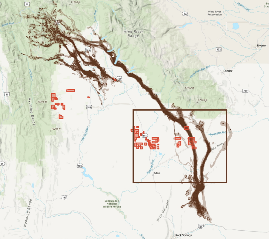 Underwood’s colleagues at the Wyoming Outdoor Council completed an analysis and compiled maps that show where and how many parcels intersect with designated, identified and known-to-science migration paths.