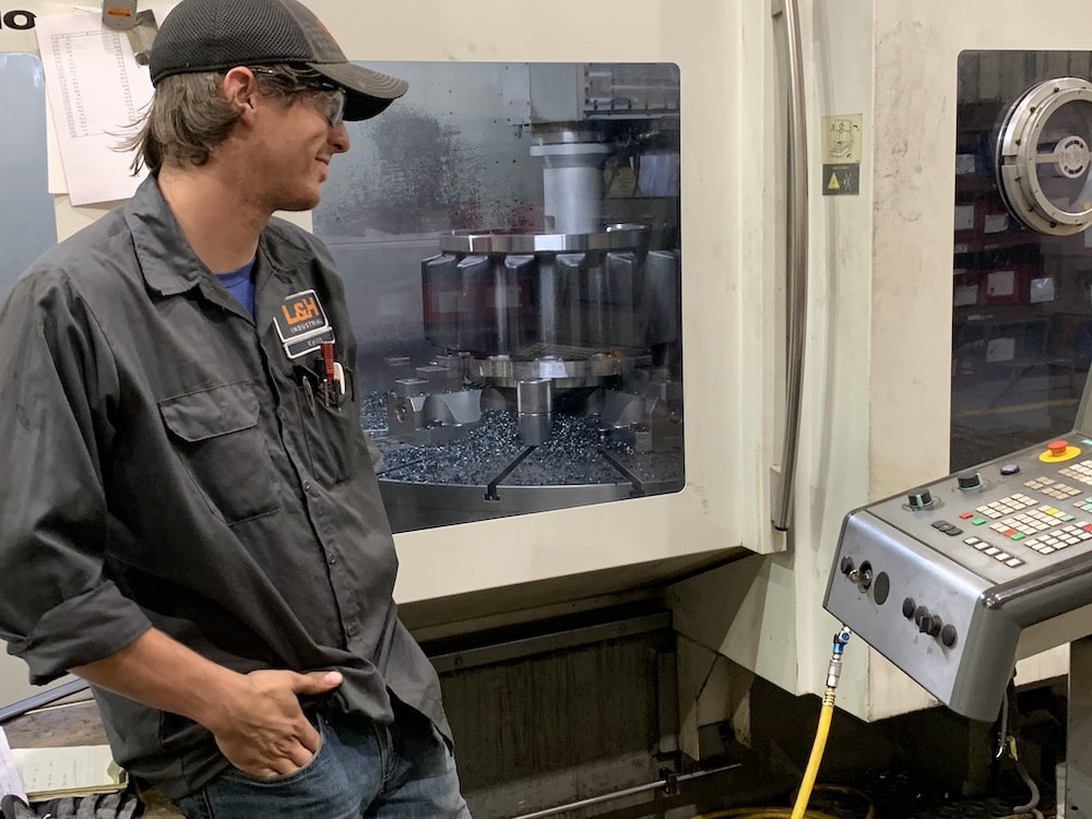 Keith Kinsinger of L&H Industrial in Gillette, pictured in 2020, says he feels secure in his machining job despite the downturn in coal, oil and gas. (Dustin Bleizeffer/WyoFile)