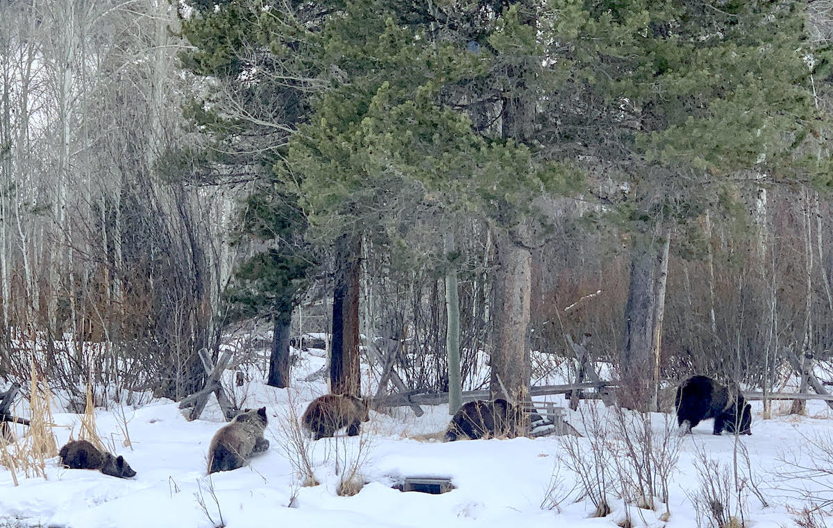 The federal wildlife agency and other officials increased efforts last week to monitor the grizzly and her family after the group traversed Jackson Hole, including residential neighborhoods, several times since August. The gang of five has secured illicit food rewards 10 times, the agency said in a statement Saturday, increasing the likelihood of additional, potentially dangerous encounters.