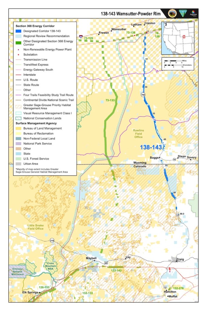 “There’s nothing that says, ‘You have to be in a corridor,'” BLM Wyoming spokesman Brad Purdy said. “I think it’s easier to be in a corridor when it comes down to the [National Environmental Policy Act permitting] process. But there’s nothing that says, ‘You absolutely cannot go anywhere else except in this corridor.'”