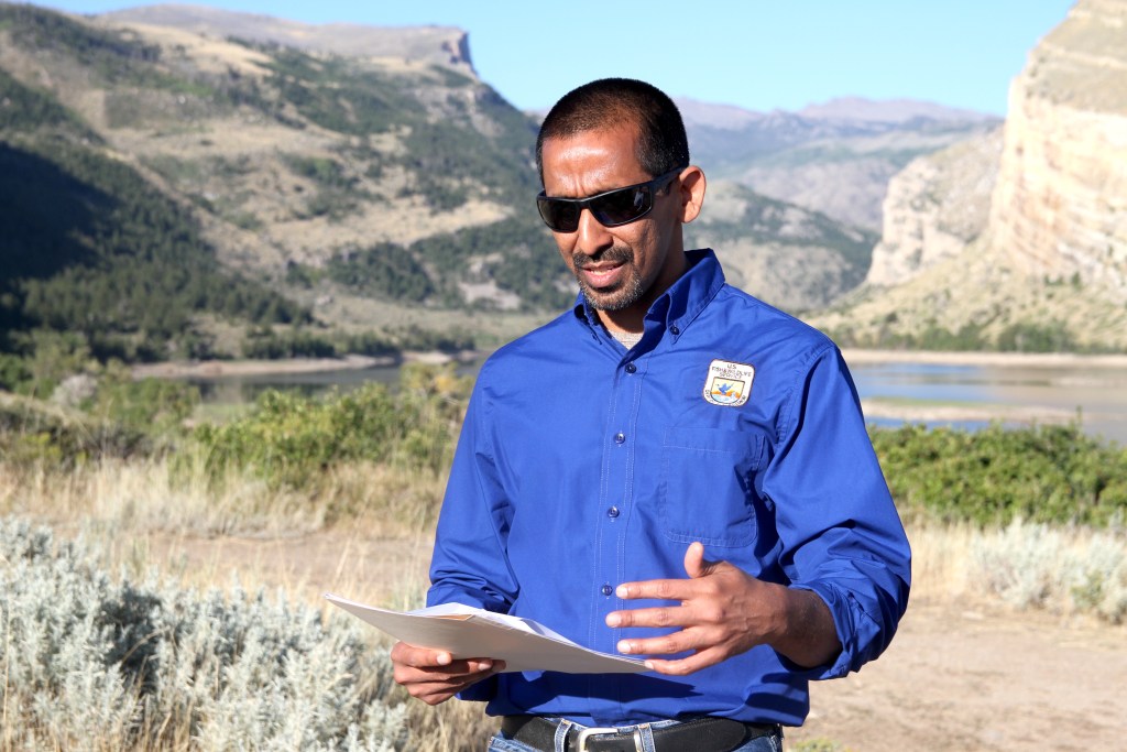 WASHAKIE RESERVOIR—Siva Sundaresan chose a landscape where mule deer, bighorn sheep and myriad other species pour out of the mountains each fall to wait out winter amid the sage to introduce a new federal program aimed at conserving sagebrush ecosystems.