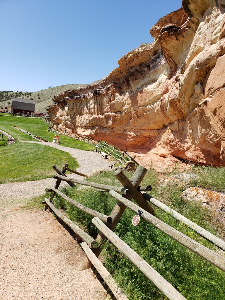 The Medicine Lodge Archeological Site includes a 750-foot-long sandstone cliff with hundreds of petroglyphs and pictographs.