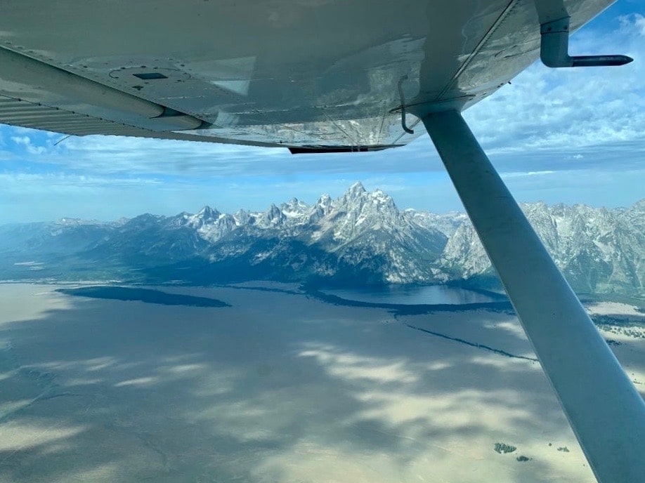 Amateur pilot and Boulder, Colorado resident Andrew Gordon took this photograph at 10:15 a.m. on Aug. 13, while flying a Cessna 182P from Broomfield, Colorado north to Montana. The morning held clear skies and only light turbulence as Gordon flew just east of the Tetons. Gordon took the photograph as the plane motored over Jackson Hole.