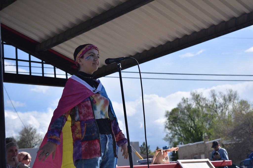 Quinn Larremore spoke about bullying at Lander Valley High School during the protest at Centennial Park on May 24. (Sofia Jeremias/WyoFile)