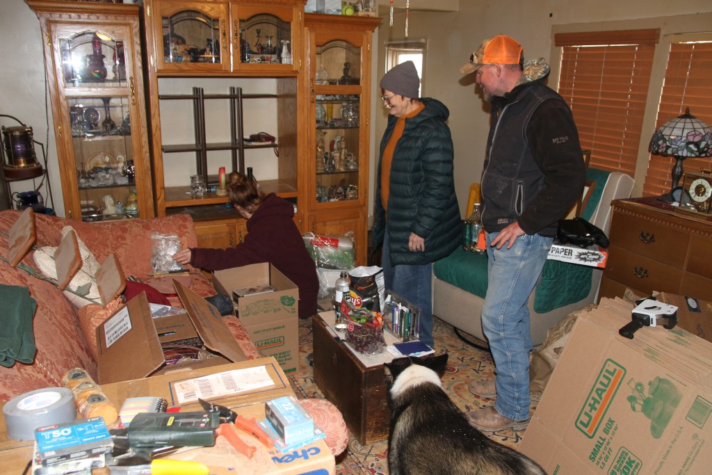 Tiffany Lawrence helps her mother, Rosalie Mansir, pack her belongings in the Star Valley Trailer Court following her eviction. (Mike Koshmrl/WyoFile)