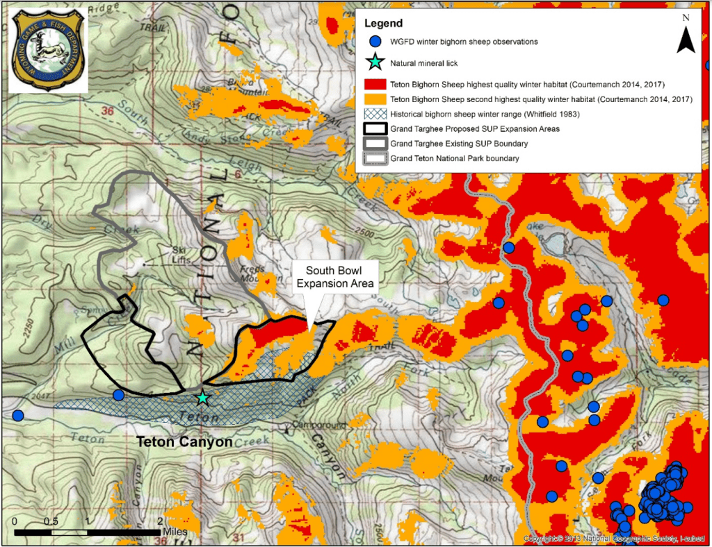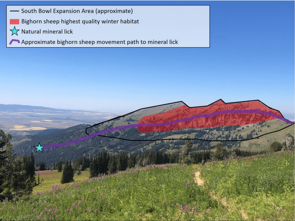“The department’s main concern regarding this proposal is the expansion of the [special use permit] boundary into the South Bowl area and the associated impacts to bighorn sheep winter habitat, summer habitat, and movement path to a natural mineral lick in Teton Canyon,” Game and Fish Habitat Protection Supervisor Amanda Losch wrote to Caribou-Targhee Supervisor Mel Bolling.