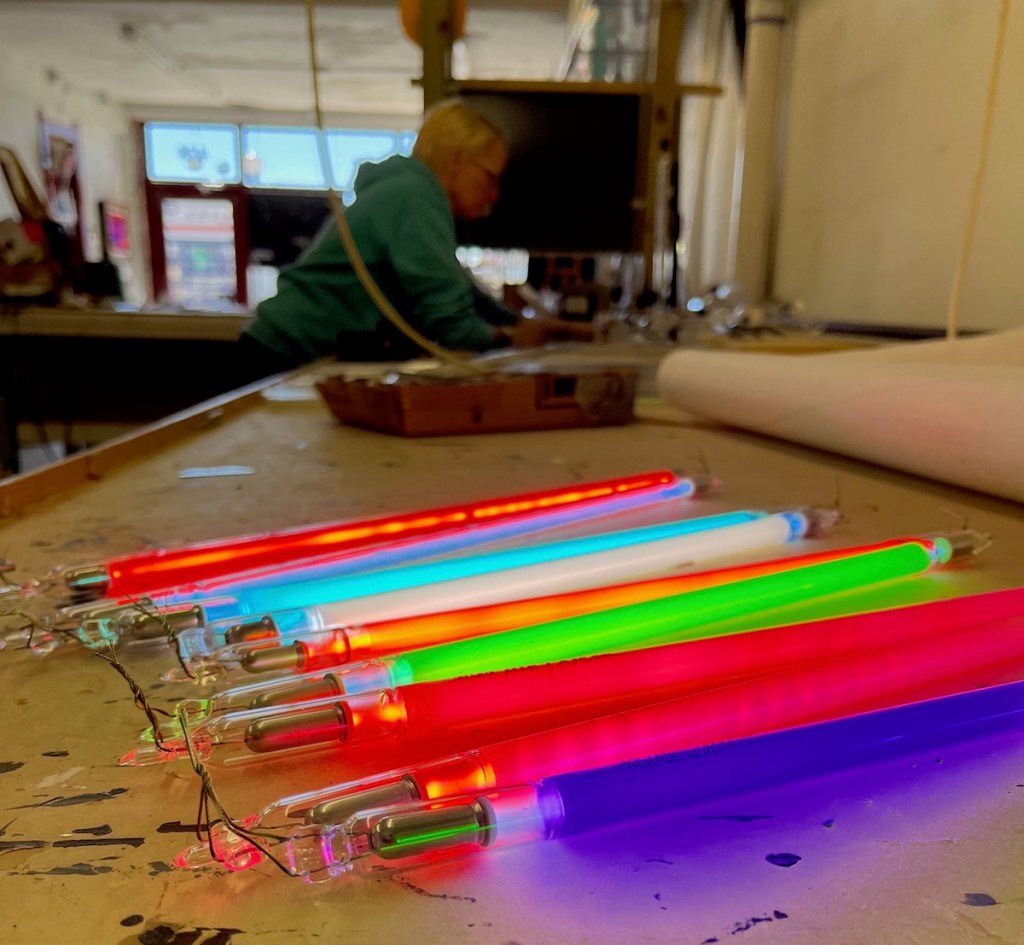 Bending glass tubes and lighting them with neon and other gasses is a long, complicated process requiring a lot of specialized equipment. It’s also a craft that’s long been in decline with businesses preferring cheaper, mass-produced signage.