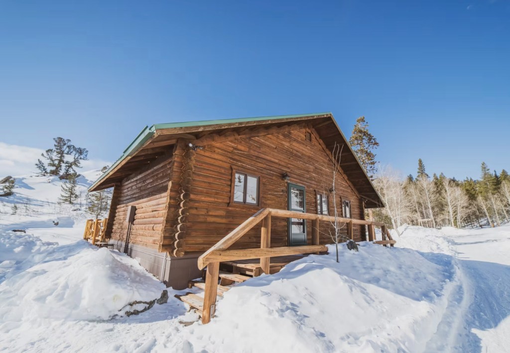 The cabin decor is a mix of warm wood, custom furniture heavy on logwork and shed antlers, western artworks and antiques like old skis or lanterns set just so. Kitchens are fully stocked, bathrooms are modern and features like locally made ceramics in the cabinets illustrate carefully considered details.