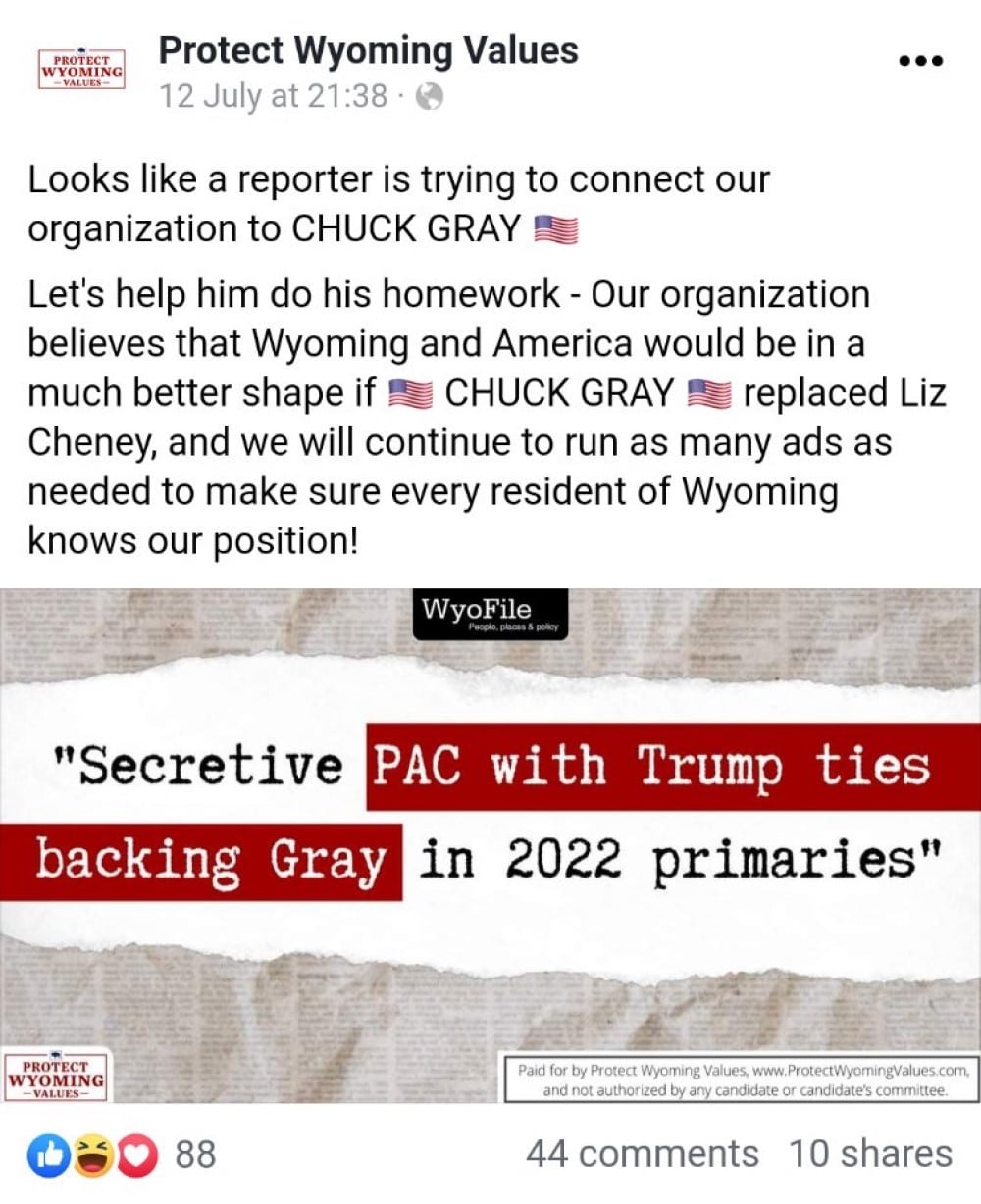 However, shortly after WyoFile reported on the PAC, it posted a rebuttal on Facebook.
