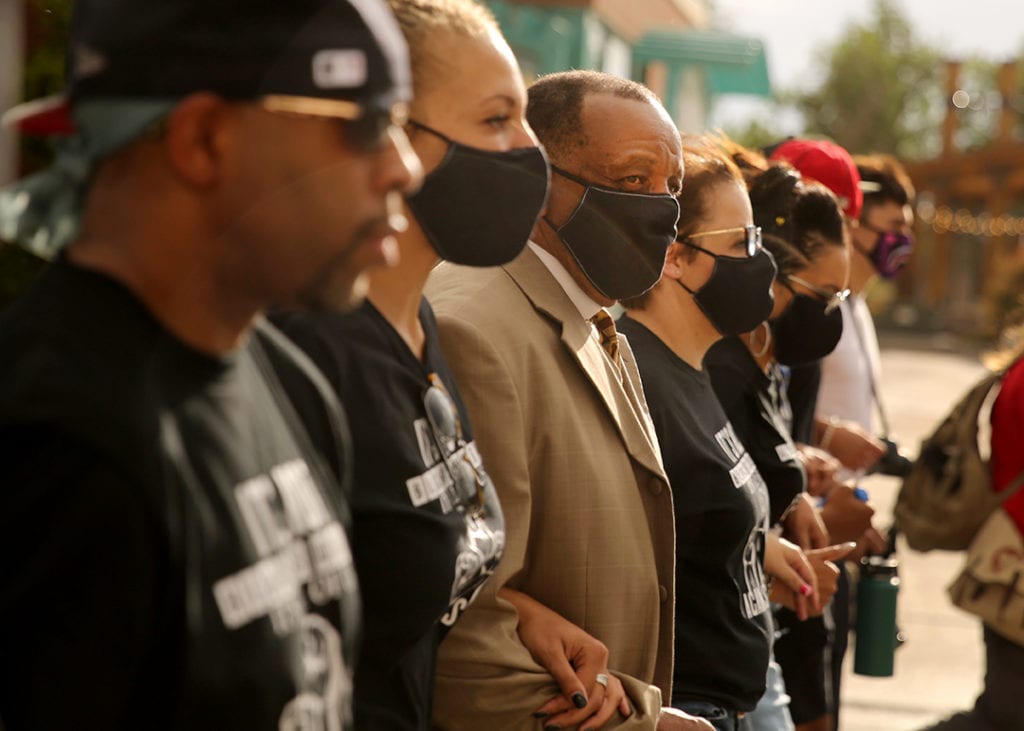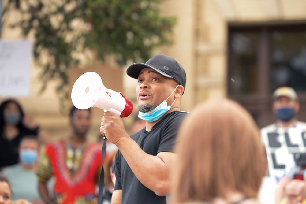 Rain or shine, protesters have marched up and down Grand Avenue in Laramie every night since June 2, 2020. Well over 100 marchers brave cold rain (that turned into snow later in the night) to march in this June 8, 2020, photograph. (Andrew Graham/WyoFile)Sheridan resident Derrick Linzy speaks on the Sheridan County Courthouse steps about his experience growing up as a black kid in the South and the struggles he has faced in Wyoming as a black man. His words during a June 5, 2020, rally brought many participants to tears. (Matthew Gaston/The Sheridan Press)