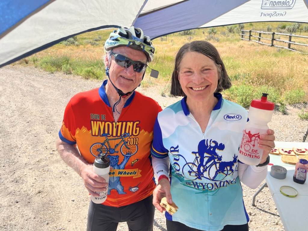 Moore eyed a jar of whole kosher dills and ordered up a sliced pickle and peanut butter sandwich. On her 19th Tour de Wyoming — the group biking experience that’s traversed a different part of Wyoming each summer for 27 years — she has her aid-station preferences dialed.