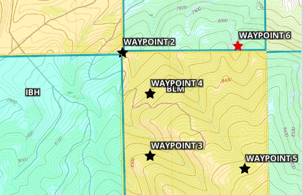 Waypoint 6: Its important to note that approximately 60% of rural fences in Wyoming are not on line and cannot be depended on to determine actual property boundaries. It appears to me that Smith was using the OnX to determine an actual boundary, and once he determined his position, immediately retreated from the Waypoint 6 location. Intent matters, and there’s a really good possibility that Smith’s intent was to determine the actual location of the ranches property line when he used OnX. His intent was to avoid trespassing on ranch surface. If so, he utilized the proper procedure and demonstrated no ill intent.