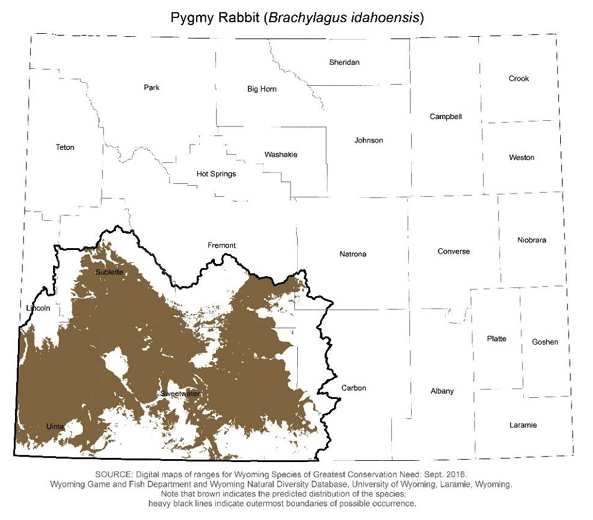 Today, biologists have a pretty good grip on where exactly pygmy rabbits are found within Wyoming. Generally, they dwell in the state’s southwestern corner, with a range that includes the Bear, Green and Sweetwater river watersheds, plus the Red Desert.