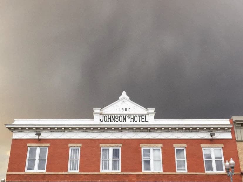 Johnson’s Hotel in historic downtown Laramie under the glow of a nearby wildfire. (Rose Curtis)