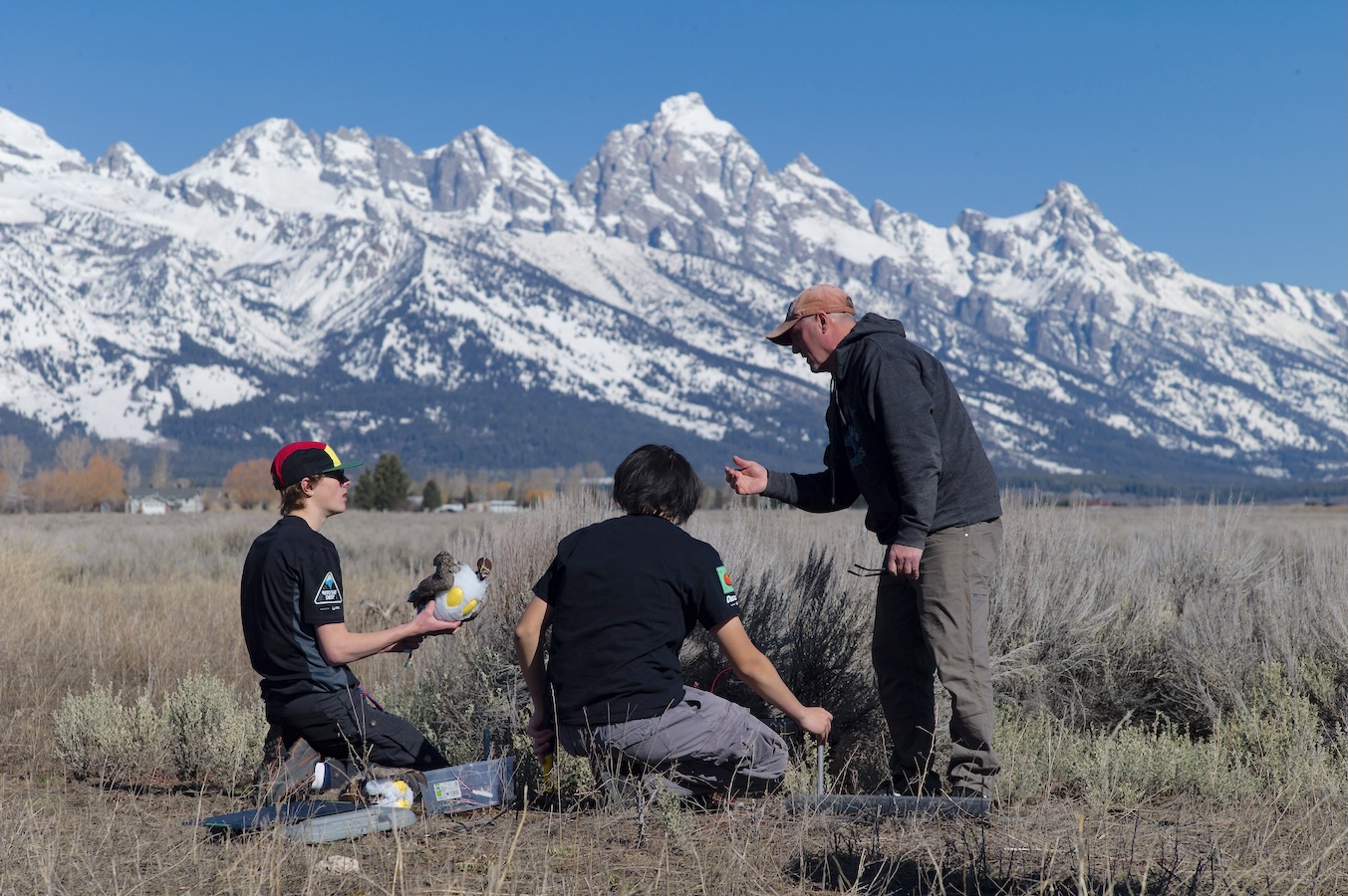 The hope is that the moving decoys and some additional static ones will encourage other grouse to congregate at a restored meadow about 3 miles south of the airport lek. “It’s a better alternative than the de-icing pads,” said Bryan Bedrosian, conservation director at the Teton Raptor Center and one of the involved biologists.