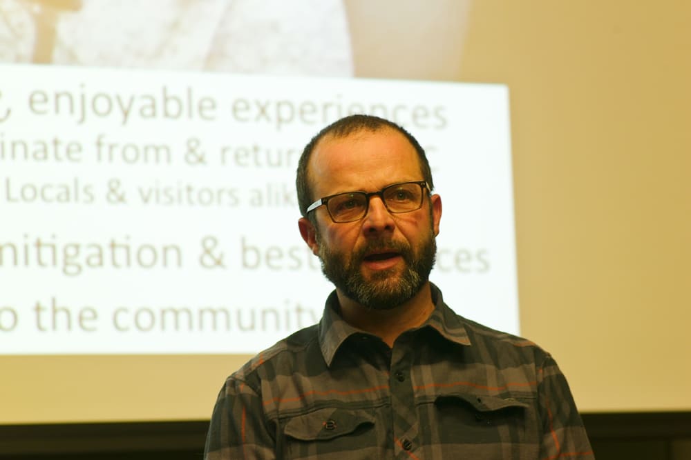 Pilot and entrepreneur Tony Chambers revealed his uncertainty to WyoFile following a public session in which about 100 people opposed his proposal. About five people supported the plan to fly scenic tours out of the Jackson Hole Airport, across parts of Grand Teton National Park and over National Elk Refuge and National Forest land, including wilderness areas.