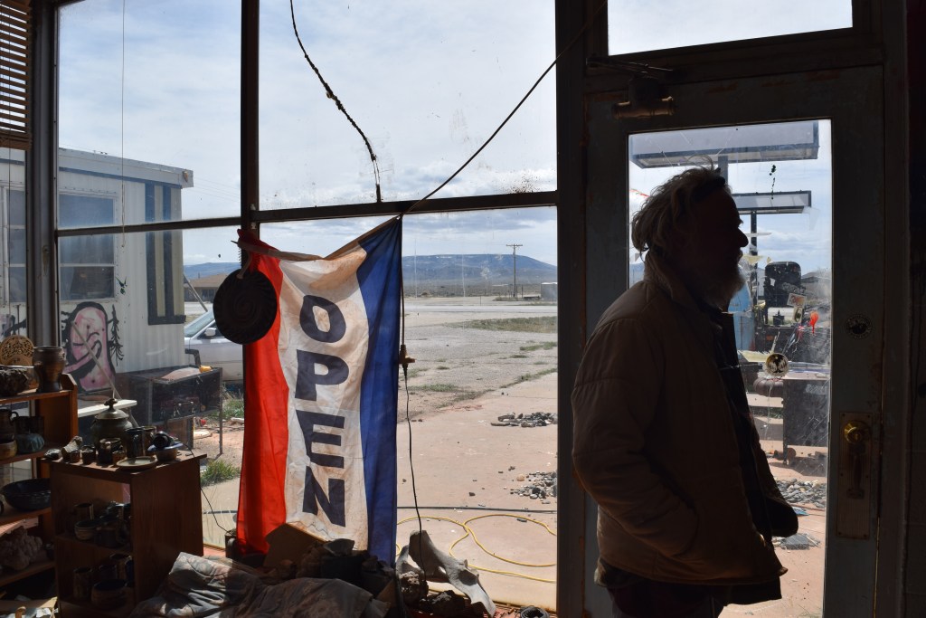Seeley has operated Monk King Bird Pottery out of a converted gas station on Jeffrey City’s main drag for 15 years. Even by Wyoming standards, the town is wind-scoured and puny, with a population of around 35. It’s a lonely landscape, but it’s what Seeley could afford, he said.