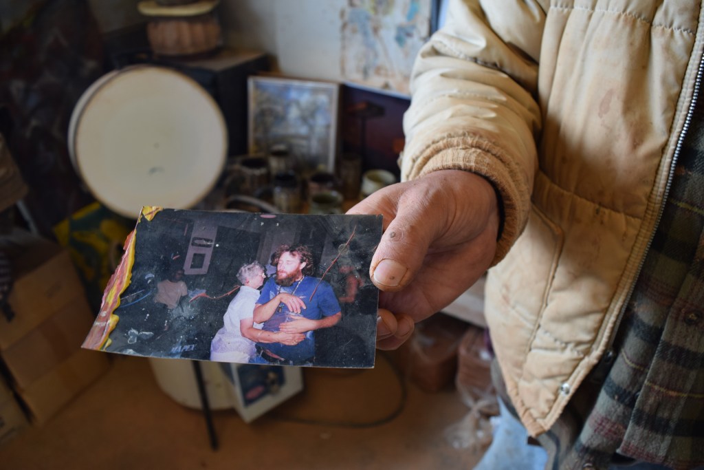 Instead, he waits for people to come to him. The long days spent sculpting and firing up a kiln alone make him an amicable host. He’s eager to show the occasional passerby his latest projects, or explain the paintings and photographs pinned on the walls.