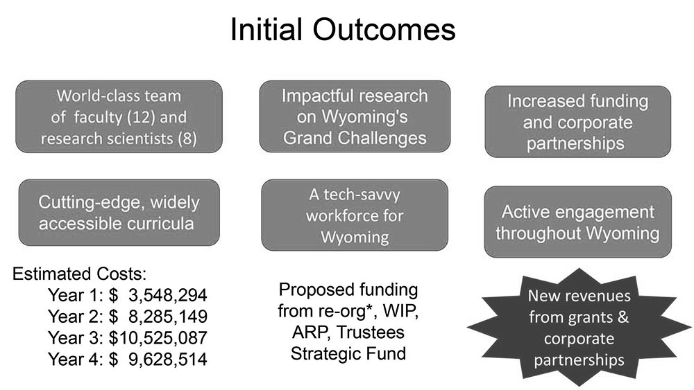 There is another important piece to UW’s planned reorganization. While shrinking and compacting parts of UW, along with anticipated layoffs, Seidel wants to establish a School of Computing. It will have 12 faculty members and 8 support staff. Most of the faculty, but probably not all, will be new hires. In Seidel’s words, this will be a world-class team. That is Adminspeak for “Git me someone’s wallet”. The need for three new administrators — one dean, two associate deans — overseeing 12 faculty members sets what I think is a new record for an administrator/faculty ratio at UW. The school would cost $32M over four years. A campus rumor is that the person most likely to be its inaugural dean is the president’s partner. Nobody doubts Dr. Allen’s credentials. Yet transparent competitive searches are traditional for university positions. The optics of nepotism are rarely good.