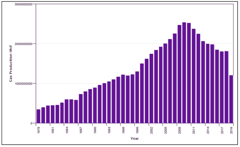Natural gas production in Wyoming through most of 2019. (Wyoming Oil and Gas Conservation Commission)