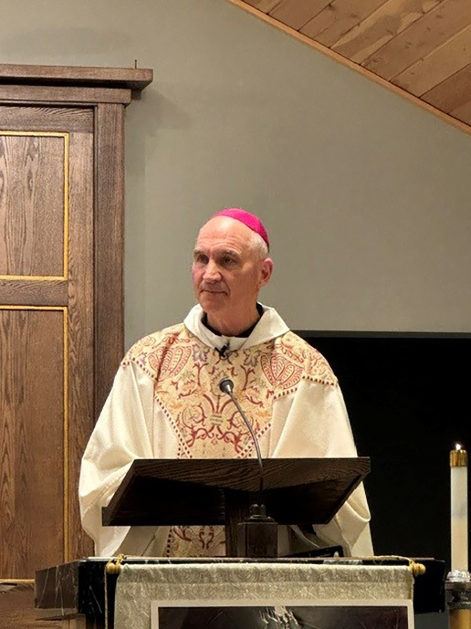 The Most Rev. Steven Biegler, bishop of the Roman Catholic Diocese of Cheyenne, speaks to parishoners on Sunday, April 12, 2026, at Our Lady of the Mountains Catholic Church in Jackson. (Diocese of Cheyenne)