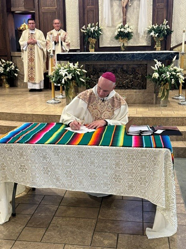 The Most Rev. Steven Biegler, bishop of the Roman Catholic Diocese of Cheyenne, promulgates his pastoral letter, “Be a Merciful Neighbor,” on Sunday, April 12, 2026, at Our Lady of the Mountains Catholic Church in Jackson. (Diocese of Cheyenne)