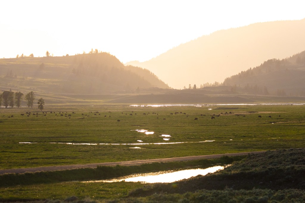 Lamar Valley, pictured here full of bison in June 2018, is regarded as the one of the best places on the planet to watch wild wolves because of its open sightlines, road accessibility and abundance of prey and predators. (Jacob W. Frank/National Park Service)